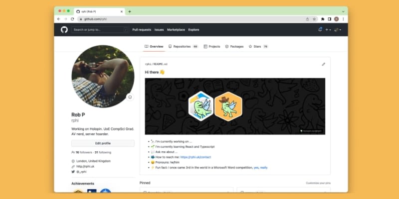 Making your GitHub profile more awesome!Step 1: Create a personal README on GitHubStep 2: Customize your Holopin board 🪄Step 3: Add your Holopin board to your GitHub profile3 Comments