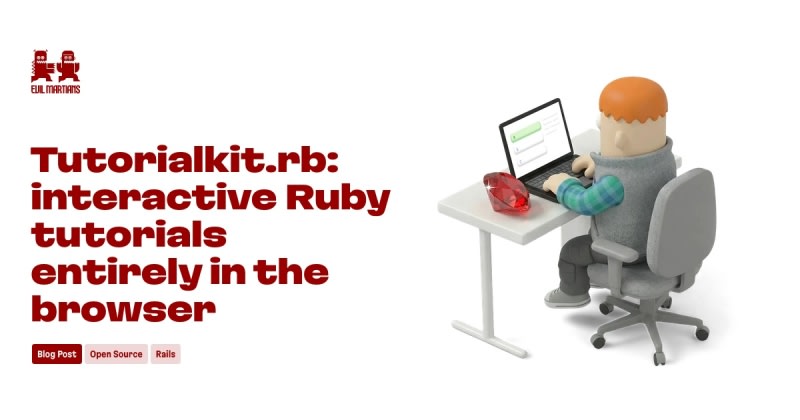 TutorialKit.rb has reached release candidate stage, enabling interactive Ruby and Rails tutorials that run entirely in the browser using WebAssembly and WebContainers. Key features include a scaffolding CLI (`npx create-tutorialkit-rb`), Claude Code skills for agent-friendly development, deployment pipelines for Netlify and