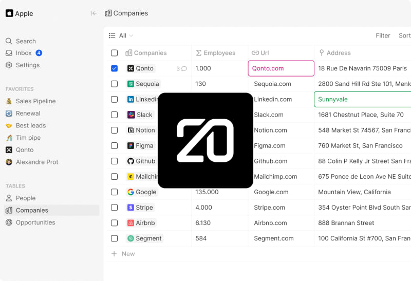 Twenty CRM is a modern open-source CRM that offers full control and freedom to users. It allows users to shape the CRM according to their business objectives and provides powerful features. Users can add, filter, sort, edit, and track customers, create opportunities for each company, see rich notes tasks displayed in a