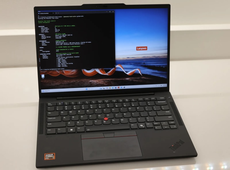 The AMD Ryzen AI 7 PRO 360 was tested for CPU performance on both Ubuntu 25.04 and Windows 11 using a Lenovo ThinkPad T14s Gen 6. The comparison involved benchmarks of Zen 5(C) cores with configurations left at their defaults. The hardware included 32GB of LPDDR5-7500 memory and a 1TB Kioxia NVMe SSD.