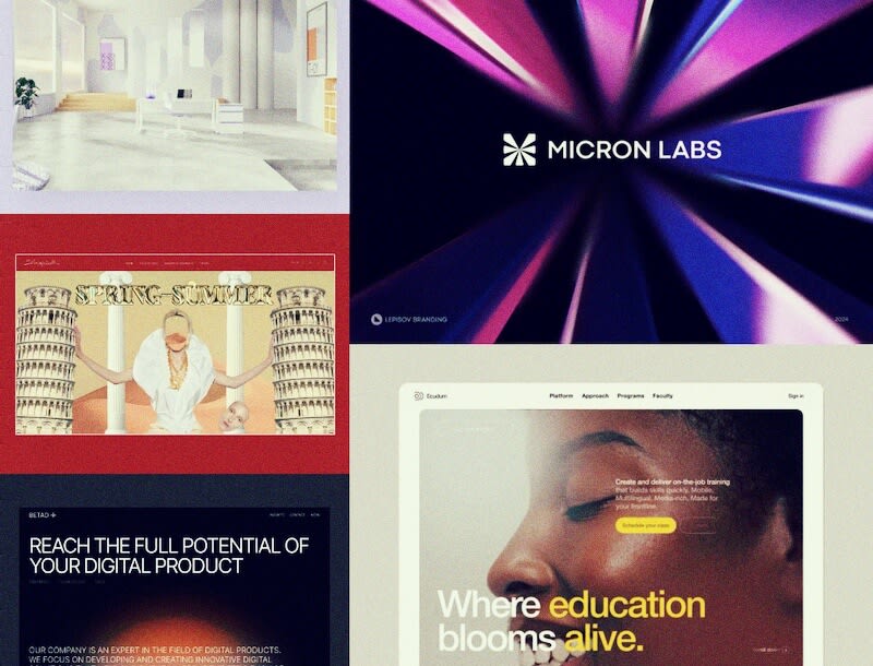 This post showcases various designs and concepts including landing pages, logo designs, website designs, motion designs, branding agency concepts, 3D animation showcases, and more.
