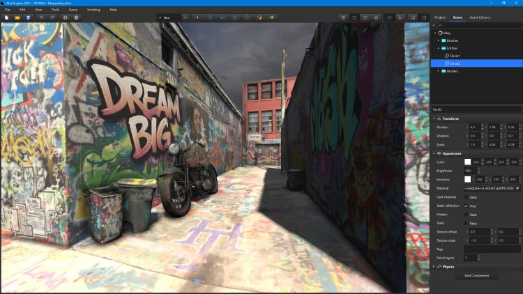 Ultra Engine 0.9.7 introduces a new decals system, particle emitters, and enhanced entity and material properties. It also includes upgraded flowgraphs, over 30 bug fixes, and various improvements to compatibility and functionality. The update aims to enhance performance and visuals for game and simulation development.