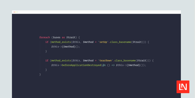 Laravel provides useful test traits to help automate setup tasks in feature tests. The base TestCase class uses the setUpTheTestEnvironment() method to clear resolved instances, refresh the application, and run setup operations for various traits. This process includes checking and invoking specific setup and teardown methods