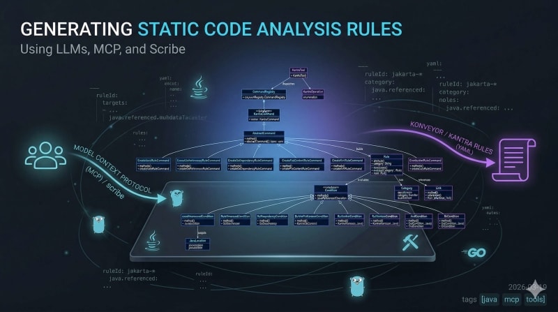 Scribe is an MCP server built with Quarkus that exposes a single tool—executeKantraOperation—to generate YAML-based static analysis rules compatible with Konveyor/Kantra. Instead of hand-writing repetitive rule YAML, developers can prompt an LLM agent (Cursor, Claude Desktop, etc.) to produce valid Kantra rules from migration