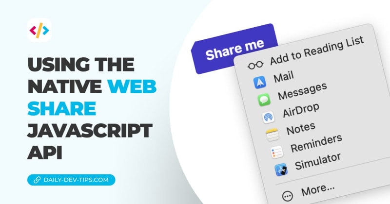 The native share function can be invoked with JavaScript. It's mainly built for mobile devices, but some desktop variants like Safari also support it. The code to determine it looks like this: console.log( 'native share available' ); inside this function, we can invoke the native share or use our fallback share mechanism. You can even attach callbacks to our native share API.
