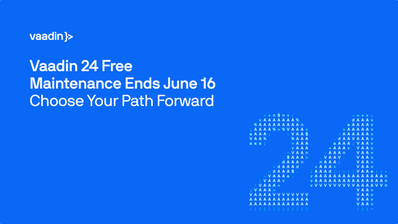 Vaadin 24 free maintenance ends June 16, 2026. Teams have two options: upgrade to Vaadin 25.1 or purchase Extended Maintenance for up to 15 years of security patches. Vaadin 25.1 brings simpler CSS-based theming with a new Aura theme, ~30% fewer dependencies, 50%+ faster dev-mode startup, and a new technology baseline requiring