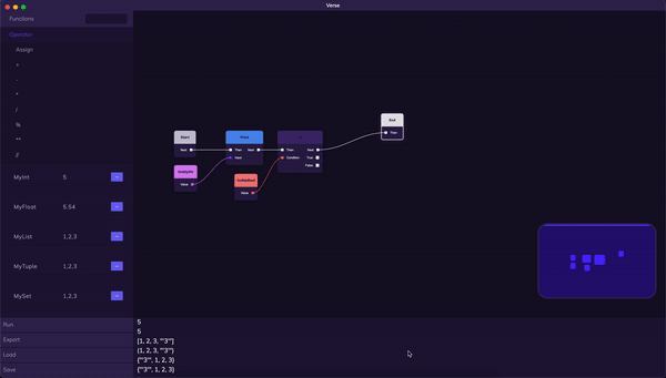 Verse is a visual programming IDE that provides developers with the ability to use the full range of programming concepts and functionalities using a graph-based interface. Verse is available now on Mac and PC. For more information on Verse, visit Verse's official website or visit: www.verse.com.