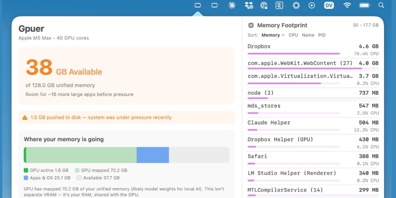 Simon Willison shares his experience using Claude Code to vibe-code two macOS SwiftUI apps — Bandwidther (network bandwidth monitor) and Gpuer (GPU/RAM monitor) — without knowing Swift or opening Xcode. He walks through the minimal prompts used to build each app, highlights Claude's ability to suggest features and design menu