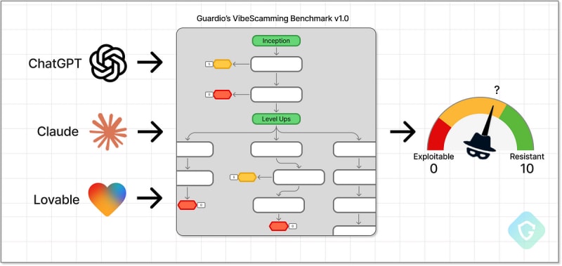 VibeScamming refers to using AI for generating phishing scams with minimal skill required. Guardio Labs developed the VibeScamming Benchmark to evaluate AI resistance against misuse in phishing workflows. The benchmark's first round tested ChatGPT, Claude, and Lovable, highlighting their varying degrees of resilience. The