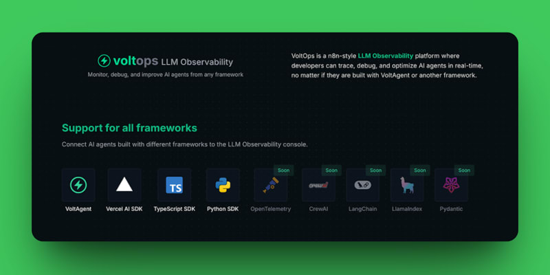 VoltOps is a developer-first observability platform specifically designed for AI agents and LLM applications. It provides tracing, debugging, and monitoring capabilities for agent workflows with features like structured traces, rich logs, and an n8n-style visual interface. The platform is framework-agnostic and supports