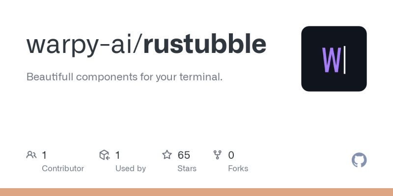 The project 'warpy-ai/rustubble' offers a variety of customizable components designed for terminal-based applications in Rust. These components include TextInput, TextArea, Spinner, Table, Progress bar, Timer, Stopwatch, Viewport, List, and MenuList. Each component is built to enhance user interaction with features like Unicode