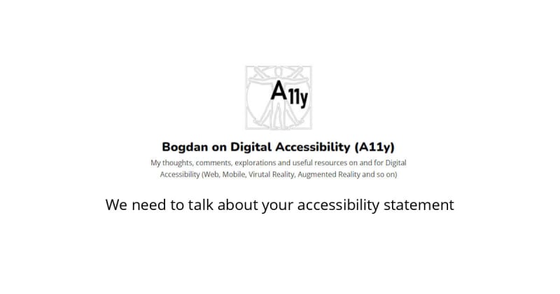 When everybody partially conformsAccessibility statements are too often out-of-sync with the page or appAccessibility statement is primarily there for the userGet your accessibility processes in placeAuthor: Bogdan CerovacSort: