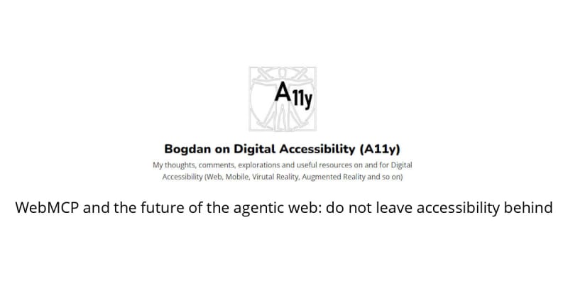 Future beyond auto-fillHuman in the loop needs accessibility of the whole loopStandards in making need co-design or they may excludeTo conclude – WebMCP is not a replacement for accessible webpagesAuthor: Bogdan Cerovac1 Comment