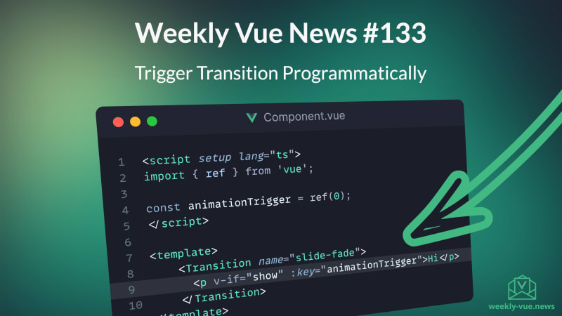 Learn how to trigger a transition programmatically in Vue and stay updated with the latest edition of the Weekly Vue News newsletter.