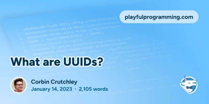 UUIDs (Universally Unique Identifiers) are 128-bit numerical values used to uniquely identify digital resources without requiring knowledge of previously generated IDs. All UUIDs share a common hexadecimal string format with embedded version and variant metadata. The five official UUID versions each serve different purposes: