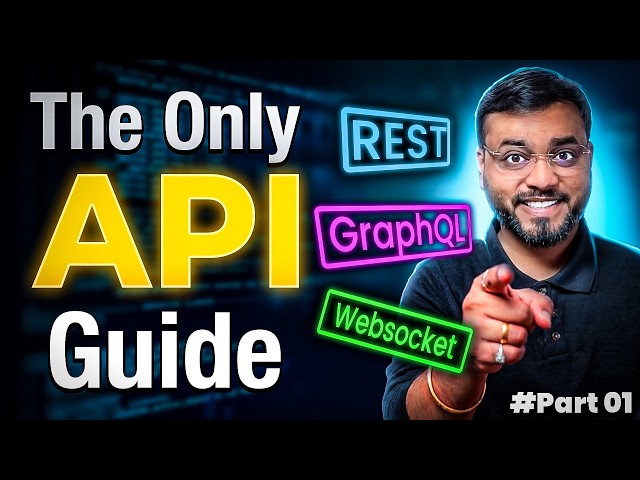 An introductory overview of APIs (Application Programming Interfaces) covering what they are and why they exist, followed by explanations of five major API types: REST (using JSON), SOAP (using XML, common in legacy systems), GraphQL (single endpoint with query language), gRPC (protocol buffers, efficient for microservices), and WebSockets (bidirectional real-time communication). Real-world examples like Google Maps integration in Uber/Zomato and chat/notification systems are used to illustrate concepts.