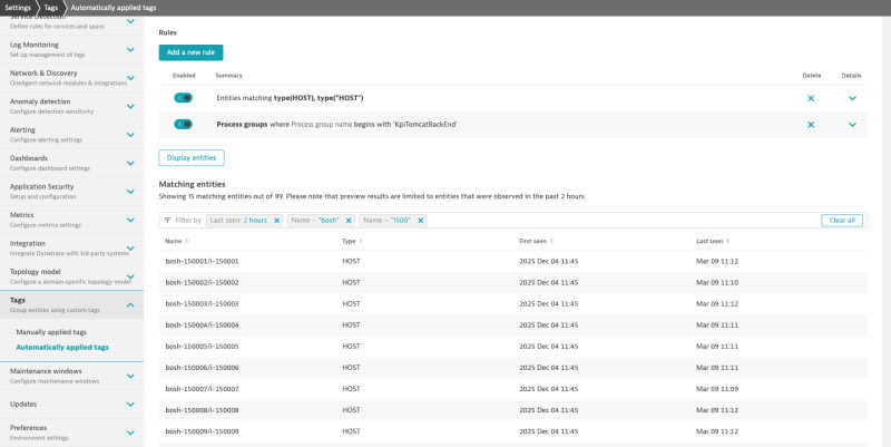 Improved preview function for tagging and management zone rulesFeature updatesFixes and maintenanceOperating systems supportDynatrace APISort: