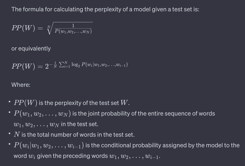 Perplexity measures how well an AI can predict the next word. Lower perplexity indicates better AI models. Practical calculation involves probability calculation, logarithm, and average log probability.