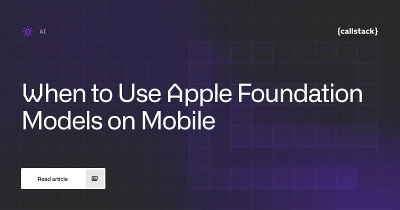 Apple's Foundation Models framework offers a practical local-first option for mobile AI features, best suited for short, privacy-sensitive, low-latency tasks like text rewriting, title generation, and lightweight classification. It is not a replacement for cloud LLMs, which remain better for large context windows, multi-document reasoning, and high-quality outputs. A hybrid routing pattern — local for cheap, frequent, offline-friendly tasks; cloud for complex or backend-dependent ones — is the recommended approach. A React Native code example shows how to gate on device availability and route between local and cloud models. A real-world case study (ChatXOS) illustrates using on-device models for chat titles and summaries to keep UX fast without unnecessary cloud round trips.