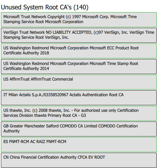 CertInfo is an open-source program that analyzes your browser history to determine which root certificates you can trust. It provides a list of used and unused root certificates, allowing you to remove unnecessary ones and reduce the risk of a successful MITM attack.