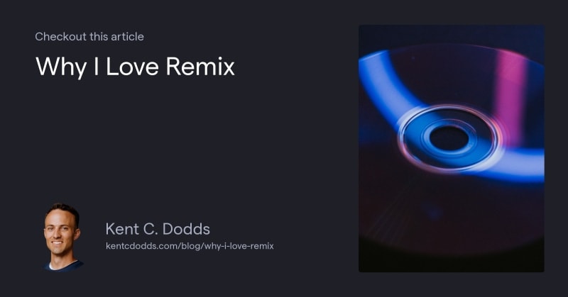 Remix enables me to build amazing user experiences and still be happy with the code I had to write to get there. kentcdodds.com is completely custom built by me using Remix. After writing tens of thousands of lines of code using this framework, I have developed a great appreciation for what this framework can do for me.