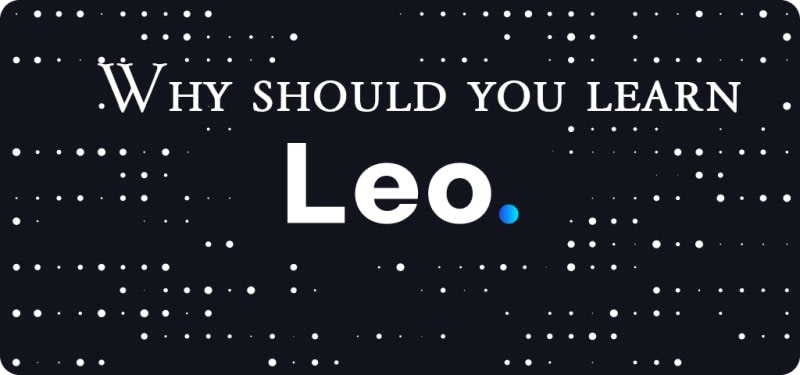 Leo is a statically-typed programming language built for the Aleo blockchain. You can build private applications in a fully private decentralized blockchain using it, basically Solidity but for Aleo. The average programmer can get up to speed in 3-4 weeks and can often learn 2-3 new languages in a year.
