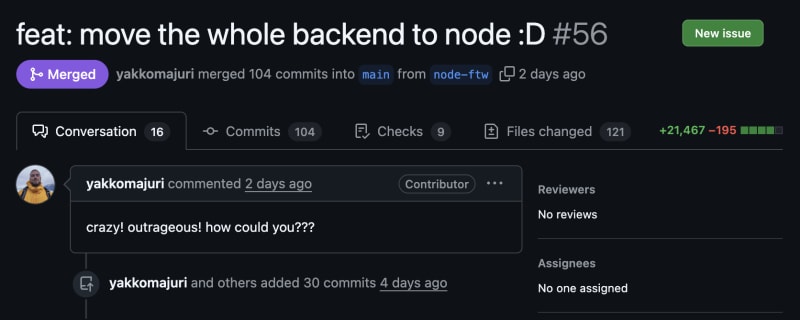 A startup rewrote their backend from Python/Django to Node.js/Express one week after launch due to Python's async limitations. The team struggled with Django's incomplete async support, colored functions problem, and the need for constant sync/async conversions. Despite losing Django's ergonomic ORM, they gained 3x throughput,