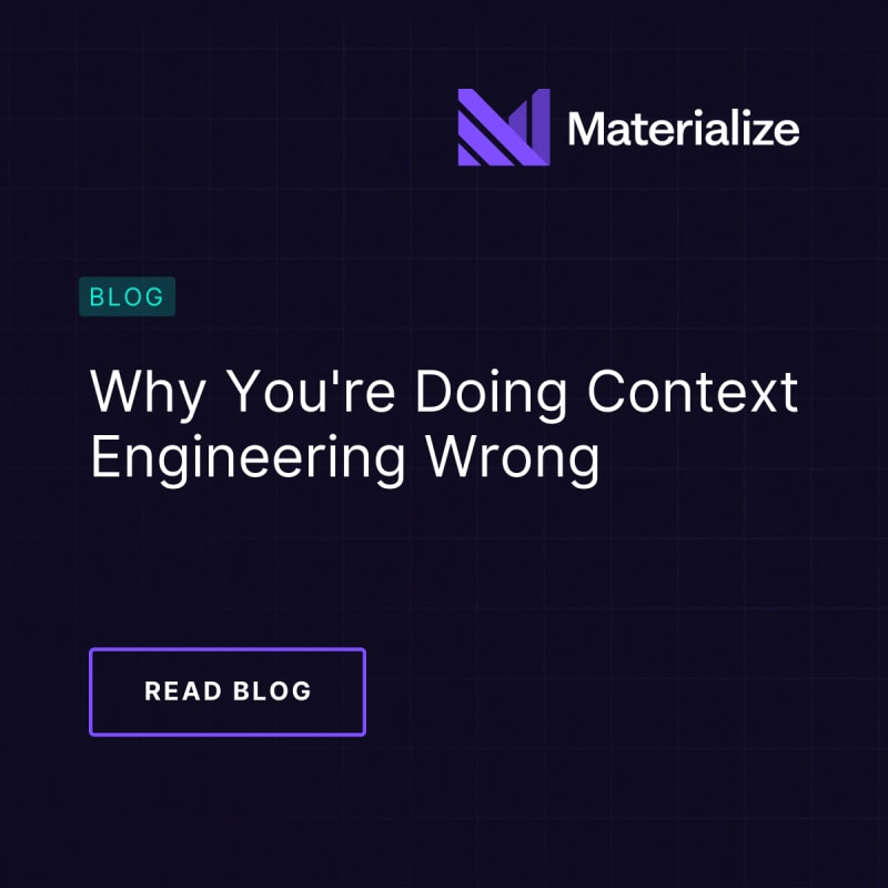 How we are doing context engineering wrongThe right way to do context engineeringMaterialize: Live data architecture for AI context engineeringNext stepsSort: