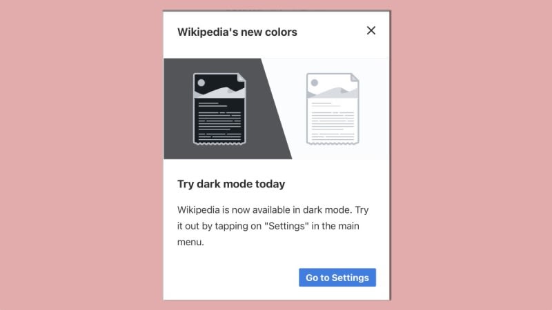 Wikipedia's mobile website now has a dark mode feature, which can be enabled by going to the site, tapping the hamburger menu, accessing Settings, and selecting the 'Dark' option under the Color section. The feature is currently experimental and only available on mobile, but may soon be available for desktop users.