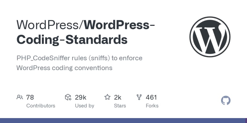 A collection of PHP_CodeSniffer rules to enforce WordPress coding conventions. Provides code quality and adherence to coding standards.