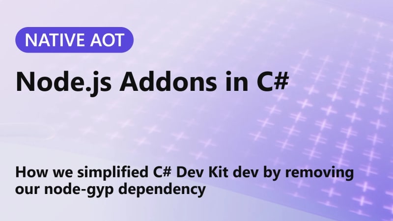 The C# Dev Kit team replaced C++ Node.js addons (built with node-gyp and requiring Python) with C# using .NET Native AOT. The post walks through building a Node.js native addon in C# using N-API, covering the project setup, module entry point with [UnmanagedCallersOnly], P/Invoke via [LibraryImport] with a custom DLL resolver