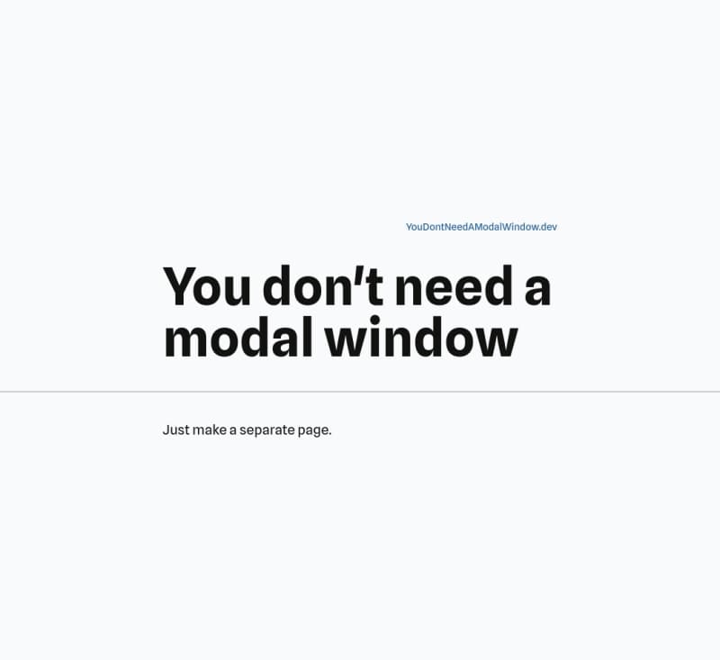 There's a very good chance the modal window you have in production has dealbreaking bugs. There are many reasons modal dialogs are used when they're not appropriate. Modal windows can't be bookmarked or shared as links, but it's complex.