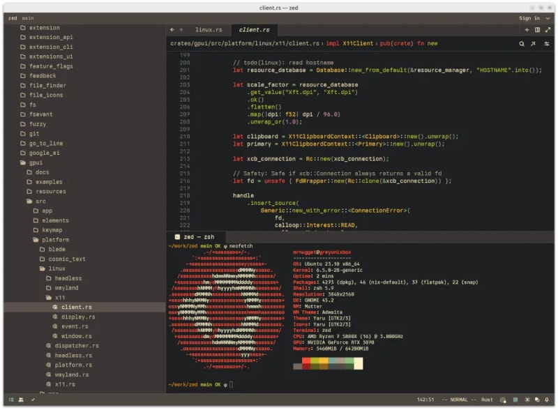 Zed Code Editor is making progress on Linux support, with remaining tasks to be completed for an alpha release.